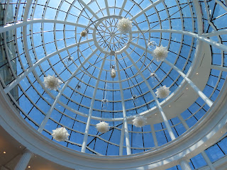 It's a funny building. From the outside, it looks like there could be a lot inside. Inside, there are essentially three areas, the lobby/bathrooms, the hall, and then its circular breakout rooms. And this is all on one floor! No stairs or elevators anywhere!